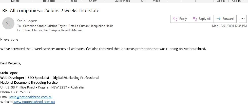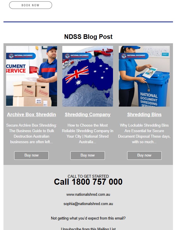 | Service | National | Inter | Aus | Metro | Brisbane | Melbourne | Sydney | Secura | Eshred |