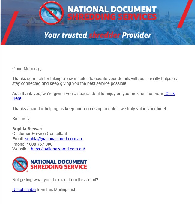 This promotion applies only to customers Sofia has contacted as part of a database update.